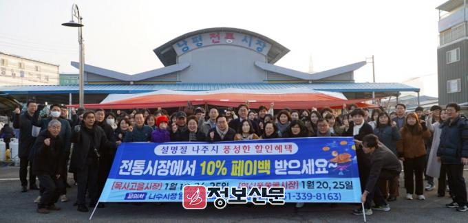 설 대목을 앞둔 전통시장 6곳에서는 나주사랑상품권 10% 페이백 행사가 진행 중이다. 5만원 이상 소비 영수증을 제출하면 소비 금액의 10%를 나주사랑상품권(지류)으로 되돌려 준다.