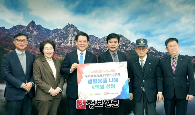 이날 전남도청에서 열린 기탁식에는 김영록 전남도지사, 김정안 (사)희망을 나누는 사람들 회장, 강성휘 전남사회서비스원장, 이연득 상이군경회 전남도지부장, 김춘일 6·25참전유공자회 전남도지부장 등이 참석했다.