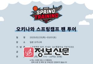 이번 스프링캠프 팬 투어는 김해 국제공항에서 출발해 일본 오키나와에서 훈련 중인 선수단을 응원하고, 연습경기를 관람할 수 있는 여행상품으로 2월 25일부터 3월 1일까지 4박 5일의 일정이다.