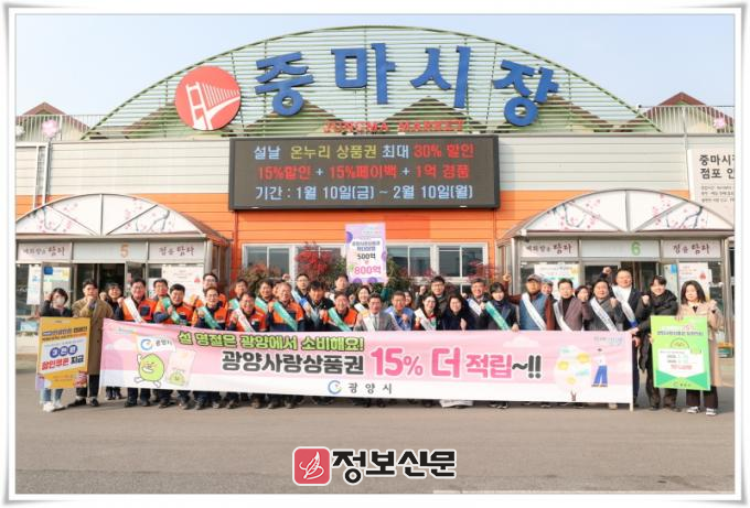 광양사랑상품권은 1월 13일부터 2월 12일까지 1달간 사용한 금액의 15%가 한시적으로 특별적립되며, 광양시는 1월 20일부터 2월 12일까지 누적 금액 5만 원 이상을 결제한 사람 중 추첨을 통해 광양사랑상품권 3만 원을 추가로 증정하는 이벤트를 진행 중이다.