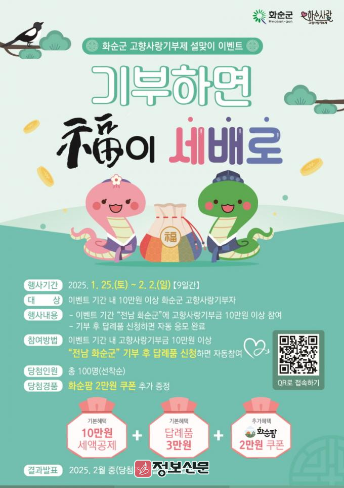 ![]() 화순군, 고향사랑기부제 설맞이 이벤트 추진 |