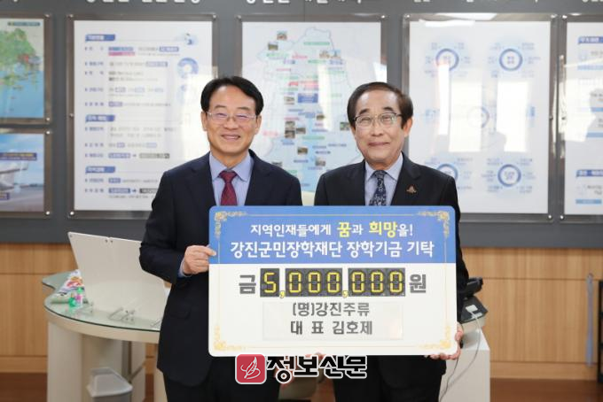 김호제 대표는 “지역사회의 성장이 곧 기업의 성장”이라며 “지역사회에 조금이나마 도움이 될 수 있어 기쁘고, 강진군민장학재단을 통해 많은 학생들이 더 큰 꿈을 꾸고 이를 실현할 수 있기를 바란다”고 말했다.