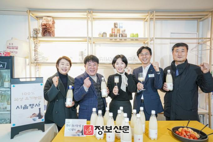 이날 홍보 행사에는 곡성군 우희정 농정과장, 곡성농협 김완술 조합장, 곡성축협 김형조 조합장이 함께 참석하여 쌀막걸리 제조과정 설명을 듣고 막걸리 시음 품평의 시간을 가졌다.