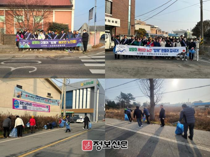 정병삼 이장협의회장은 “민족 대명절인 설을 맞아 청결한 노안면을 만들기 위해 많은 사람들이 환경정화와 캠페인에 참여해 뜻깊다”며 “고향을 방문하는 주민들에게 아름다운 노안의 모습을 보여드릴 수 있도록 더욱 노력하겠다”고 전했다.