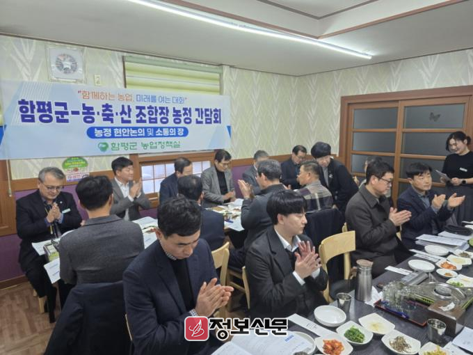 함평군은 24일 “농‧축‧산 농정 간담회가 지난 22일 관내 식당에서 성공적으로 마무리됐다”고 밝혔다.