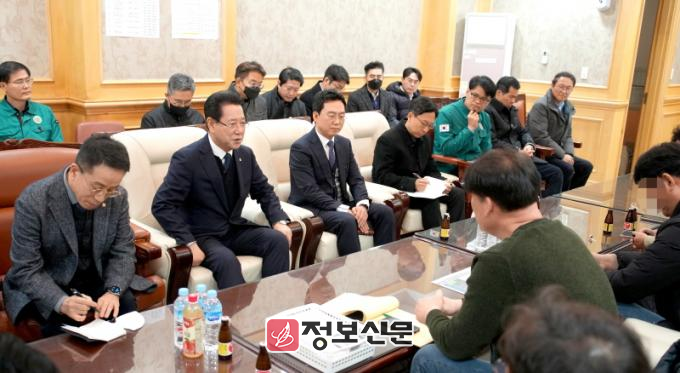 ![]() 김영록 전라남지사가 25일 무안국제공항에서 제주항공 여객기 사고 유가족대표단과 유가족 총회 등 후속 대책에 대해 논의를 하고 있다.