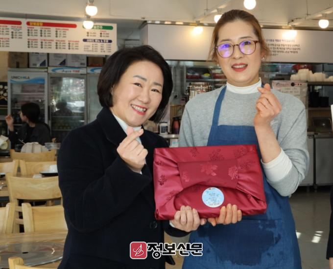 먼저 신천지 광주교회 홍보단원들은 어려운 경기 속에서도 꿋꿋이 자리를 지키는 교회 인근의 상가 35곳을 직접 찾아가 사장님들에게 보자기로 정성스럽게 포장한 선물과 함께 새해 인사를 건넸다. 또 다양한 축복의 메시지가 담긴 성구 카드로 새해 덕담을 나눴다.