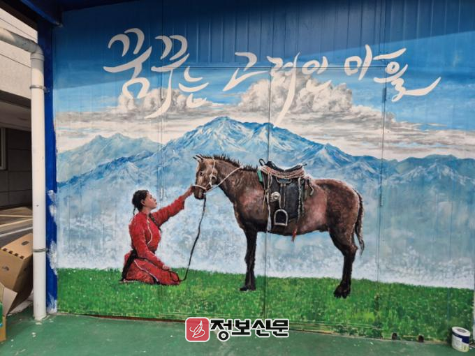 ![]() 광주 고려인마을 산하 종합지원센터 벽면에 그려진 한 벽화가 관광객들의 마음에 깊은 감동을 주고 있다. /사진=고려인마을 제공 |