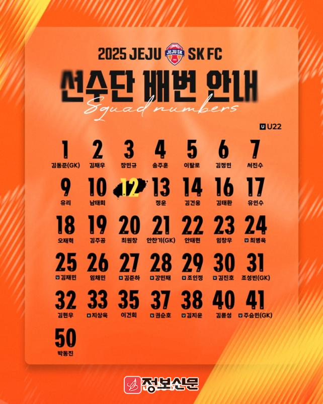 ![]() 제주SK FC, 2025시즌 선수단 등번호 공개 |