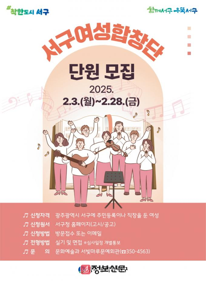 ![]() 광주시 서구, 여성합창단 신규단원 공개 모집 |