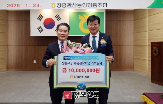 이날 기부금 전달식은 장흥관산농협 정기총회를 맞이하여 주요 관계자들이 참석한 가운데 장흥관산농협에서 진행됐다.