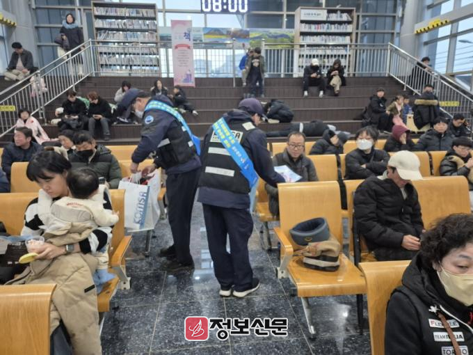 ![]() 한국해양교통안전공단 고흥운항관리센터에서 설 연휴 특별교통 기간 여객 이용객을 대상으로 여객선 안전수칙 등 해양안전캠페인을 실시하고 있다.