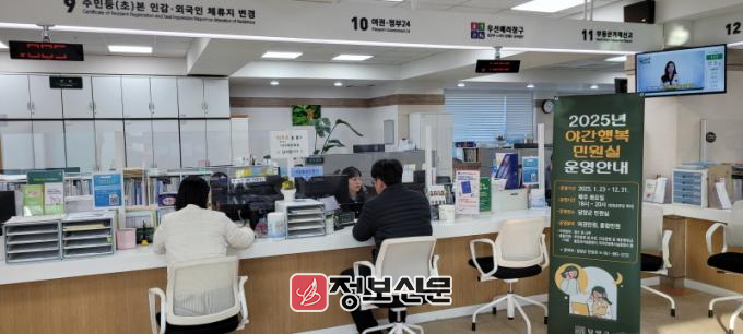 2024년에 처음 운영을 시작한 야간 민원실은 △여권 △주민등록등·초본 △인감증명서 △출입국사실증명서 등의 민원이 총 164건 중 90%(148건)를 차지했으며, 특히 여권 발급은 최근 급증한 해외여행에 따라 수요가 계속 늘어나고 있어 큰 인기를 끌었다. 야간 민원실은 매주 화요일 18시부터 20시까지 별도의 예약 없이 현장방문으로 이용할 수 있다.