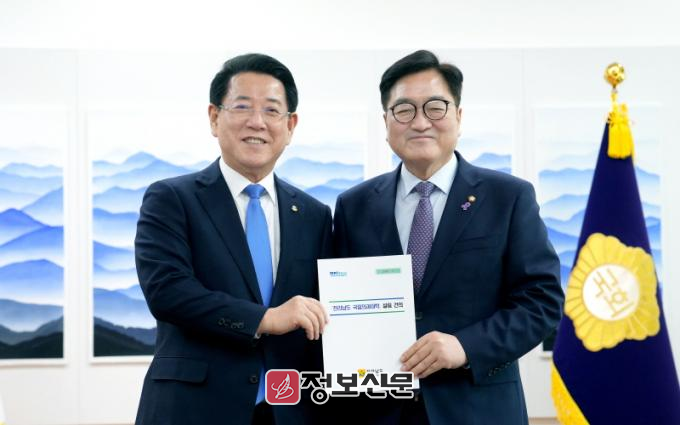 ![]() 김영록 전라남도지사가 3일 오후 국회에서 우원식 국회의장을 만나 전라남도 국립의과대학 설립 및 주요 현안 해결을 위한 건의 등 국회 차원의 협조를 요청하고 있다.