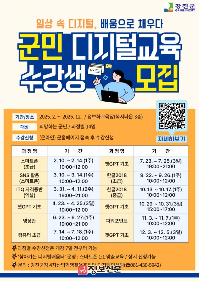 ![]() 강진군, 군민을 위한 맞춤형 디지털 교육 추진 |