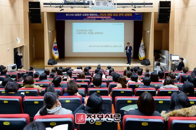 그 시작으로 지난 2월 1일 서귀포시청 문화강좌실에서 관내 중․고등학생 및 학부모 200여 명이 참석한 가운데 ‘메가스터디 남윤곤 소장 초청, 2026 대입 성공 전략 설명회’를 뜨거운 열기 속에 성황리에 마쳤으며, 참여자 만족도 97.8%의 큰 호응을 얻었다.