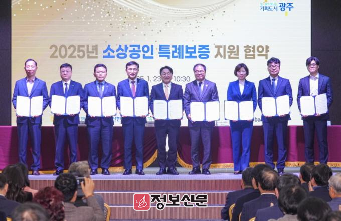 광주시는 특례보증 확대를 위해 지난 1월23일 광주지역 경제주체 76개 기관·단체가 함께한 ‘2025 광주경제 다함께 착착착’ 행사에서 금융기관 8곳과 ‘2025년 소상공인 특례보증 지원 협약’을 체결했다.