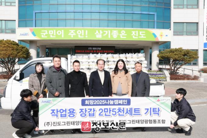 최근 진도군청 앞에서 진행된 기탁식에는 김희수 진도군수, ㈜진도그린태양광 김해나 대표이사, ㈜대호건설 김남중 대표이사, 진도그린태양광협동조합 채원준 조합장 등 관계자가 참석했다.