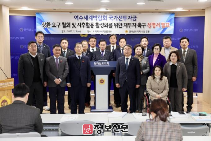 하지만 “정부가 2025년도 세입예산으로 국가선투자금 3,658억 원을 편성함에 따라 박람회장 운영 주체인 여수광양항만공사는 정부의 상환 압박에 박람회장 자산매각이나 사후 활용 사업축소를 검토할 수 밖에 없는 현실에 처해 있다”고 호소했다.
