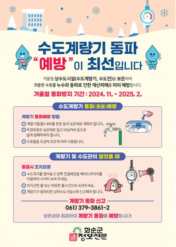 ![]() 화순군, 수도계량기 동파 대응 강화 |