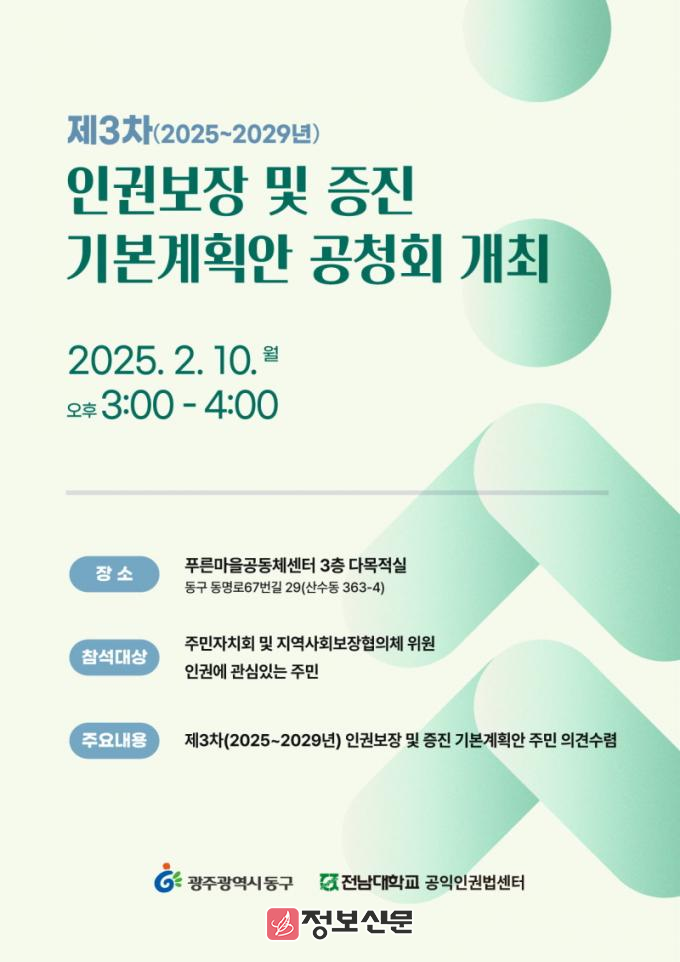 ![]() 광주시 동구, 제3차 인권 보장 기본계획 공청회 개최 |