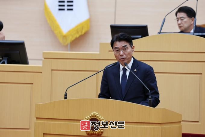 ![]() 2월 5일 제387회 임시회 제1차 본회의에서 제안설명하는 류기준 의원 |