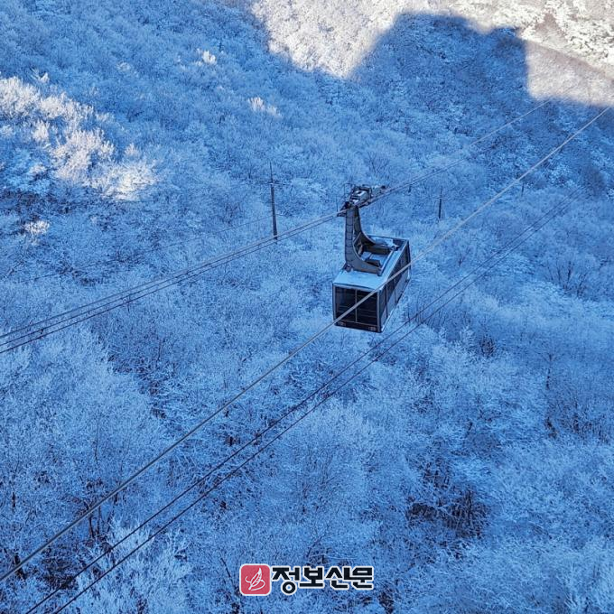 밤사이 폭설로 두륜산의 겨울나무마다 상고대가 활짝 피어 눈부신 겨울 풍경을 만들어 내고 있다. 좀처럼 만나기 어려운 겨울산의 백미, 상고대의 소식에 케이블카를 타고 고계봉을 찾는 방문객들도 줄을 잇고 있다.