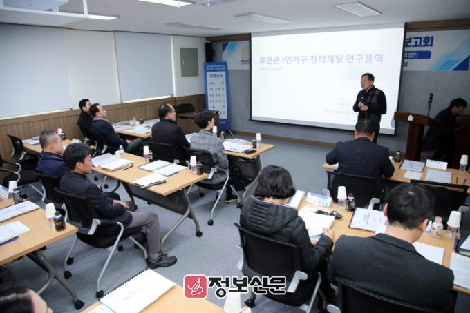 보고회는 각 연구단체 소속 의원들과 담당 연구원, 관계부서 공무원 등 30여 명이 참석했다. 군의원들은 용역 수행기관으로부터 연구단체의 주제에 대한 연구용역 최종보고를 듣고, 이후에는 성과물과 연구활동에 대해 질의·답변하는 시간을 가졌다.