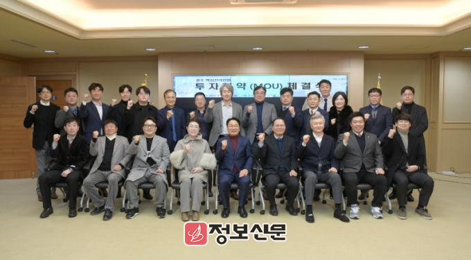 광주시와 광주경제자유구역청이 공동 개최한 이날 협약식에는 강기정 시장을 비롯해 선석기 광주경제자유구역청장, 최태조 인공지능산업실장, 투자기업 대표 등이 참석했다. 투자협약 기업은 국내 19개 사(광주 13개, 타지역 6개)와 국외 2개 사(미국 1개, 국내복귀 1개) 등 총 21개 사다.