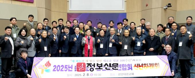 ![]() 김영록 전라남도지사가 8일 광양 대광교회에서 열린 ‘순천노회 남선교회연합회 2025년 신년하례회’에서 참석자들과 기념촬영을 하고 있다.