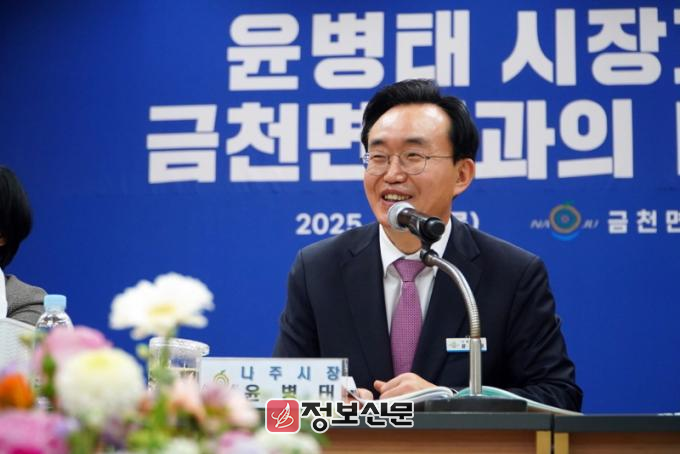 ![]() 윤병태 나주시장이 2025년 읍면동 주민과의 대화를 갖고 있다. (사진제공-나주시) |