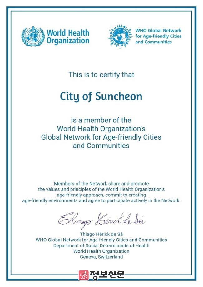 ![]() 순천시, 세계보건기구(WHO) 고령친화도시 재인증 획득 |