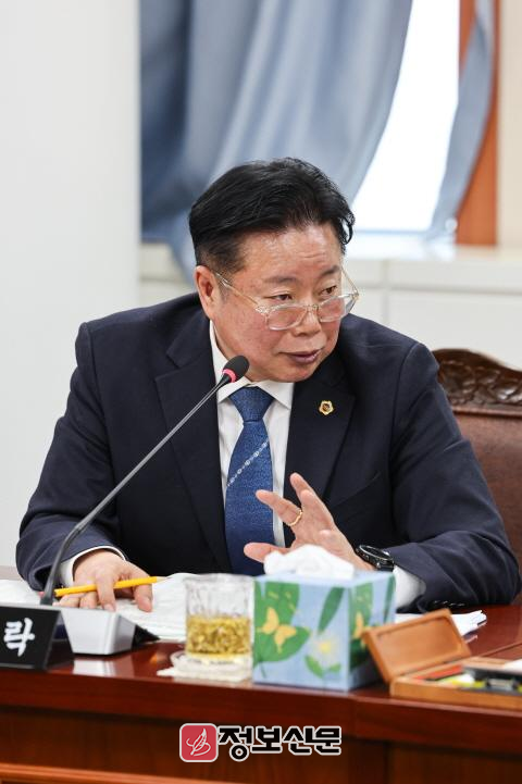![]() 전라남도의회 제387회 임시회 보건복지환경위원회 소관 환경산림국 업무보고(6일)에서 임지락 의원이 집행부를 향해 질의하고 있다. |