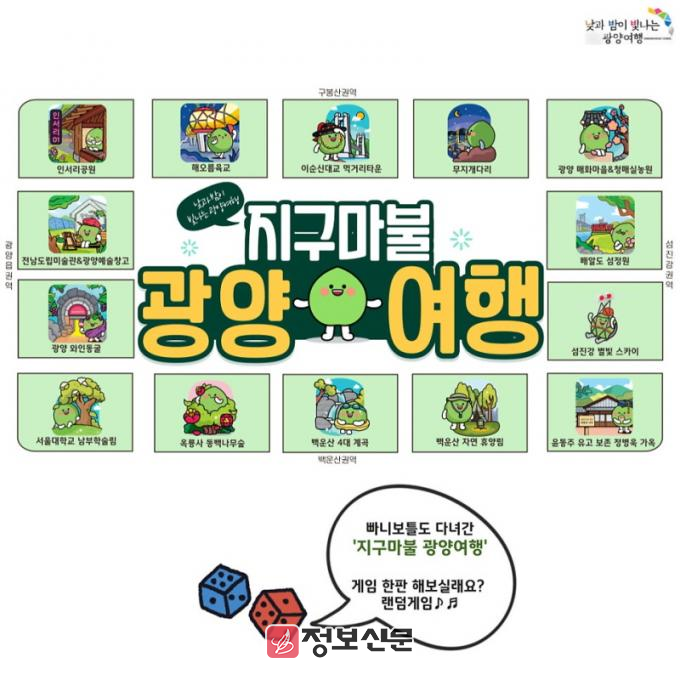사업명은 오는 3월 방송 예정인 ENA 대표 예능 ‘지구마불 세계여행’ 광양편과 연계해 기획됐다. 광양 관광지를 부루마블 미션 코스처럼 구성해 관광객들에게 도전과 성취의 재미를 제공하고, 여행의 흥미를 높이기 위한 취지다.