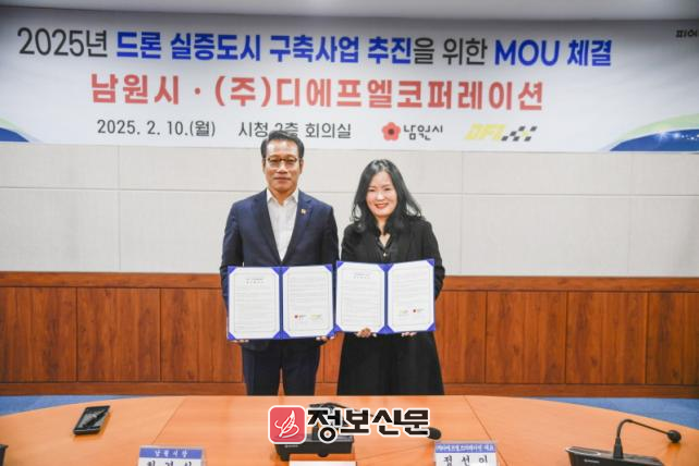 이에 지난 10일 남원시청에서 ㈜디에프엘코퍼레이션(대표 정선이)과 드론 스포츠 글로벌 운영체계 구축과 전문인력양성을 위한 MOU를 체결했다.