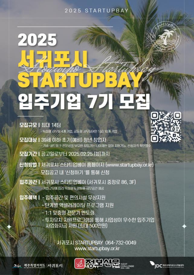 ![]() 서귀포시, 스타트업베이 제7기 입주기업 모집 |