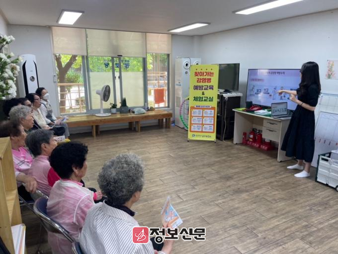 찾아가는 감염병 예방 교육은 지난해부터 관내 경로당을 이용하는 어르신의 건강 보호 차원에서 진행한 사업이다. 감염병 고위험군에 해당하는 데다 경로당에서 주로 집단생활을 하며 노후를 보내고 있기 때문이다.