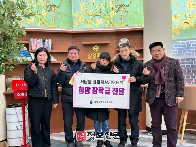 서남동 바르게살기위원회는 매년 동 행정복지센터로부터 추천받아 장학금 전달 사업을 추진 중이다. 올해도 어려운 환경 속에서 묵묵히 학업에 전념하고 있는 모범 청소년 1명을 추천받아 장학금을 전달했다.