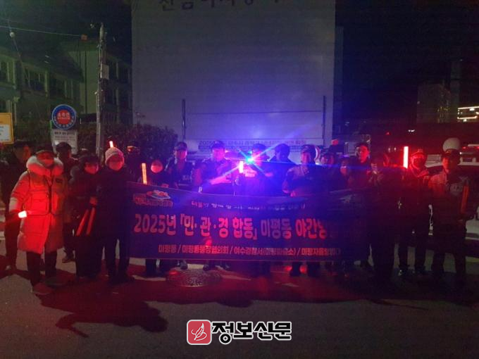유수성 미평동장은 “민·관·경 합동 야간 방범 순찰을 강화해 시민들의 안전한 귀갓길 조성에 최선을 다하겠다”고 말했다.