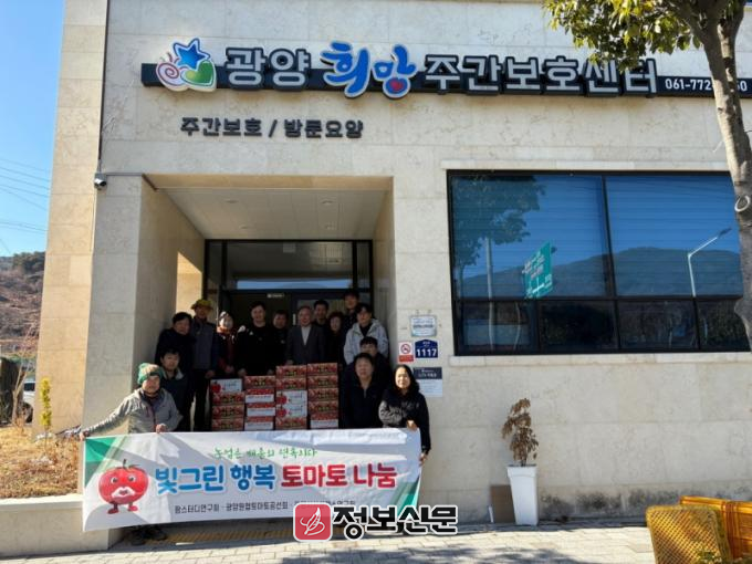 광양시는 13일 시설채소연구회(회장 문영운)가 직접 재배한 토마토 100kg을 진상면 희망노인복지센터에 기부했다고 밝혔다. 이번 기부는 지역 내 소외계층과 어르신들을 돕기 위한 것으로, 건강한 먹거리를 제공하고 이웃사랑을 실천하고자 마련됐다.