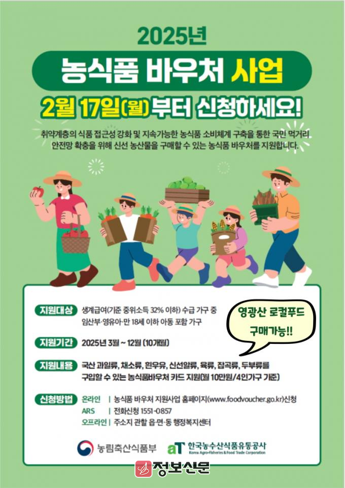 ![]() 영광군, 취약계층 대상 농식품바우처 지원사업 신청 접수 |