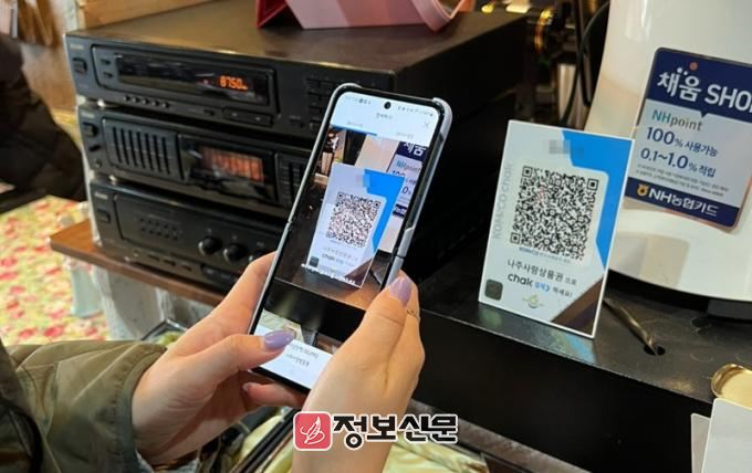 QR거치대는 구매자가 나주사랑카드 또는 지류형 상품권을 소지하지 않아도 지역상품권‘chak’ QR스캔을 통해 간편하게 결제할 수 있고 가맹점의 경우 결제수수료가 없다는 점에서 큰 호응을 얻고 있다.