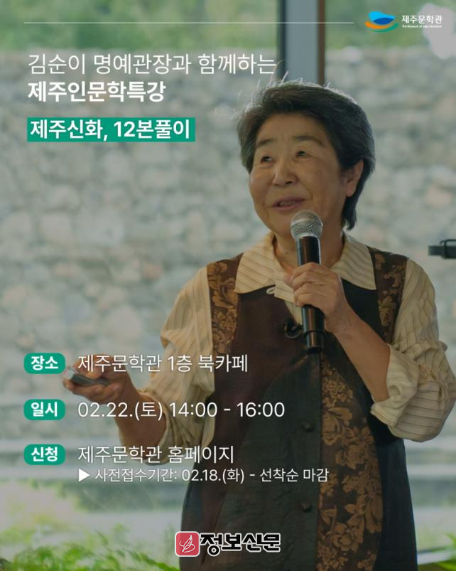 ![]() 제주문학관, ‘제주신화, 12본풀이’ 인문학 특강 개최 |