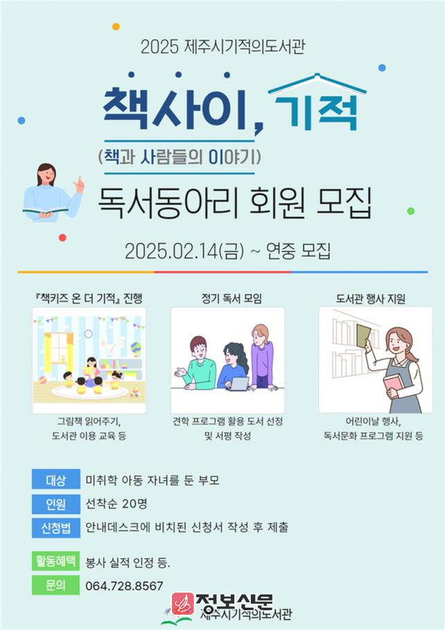![]() 제주시기적의도서관, 책사이, 기적 독서동아리 회원 모집 |