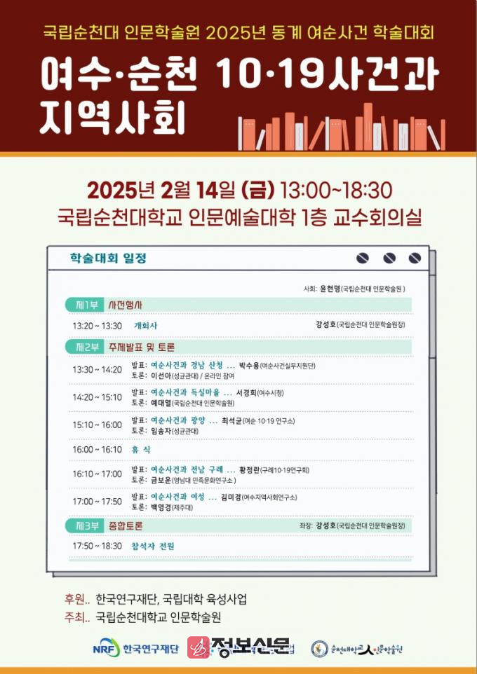 ![]() 국립순천대 인문학술원, 2025년 동계 여·순사건 학술대회 개최 |