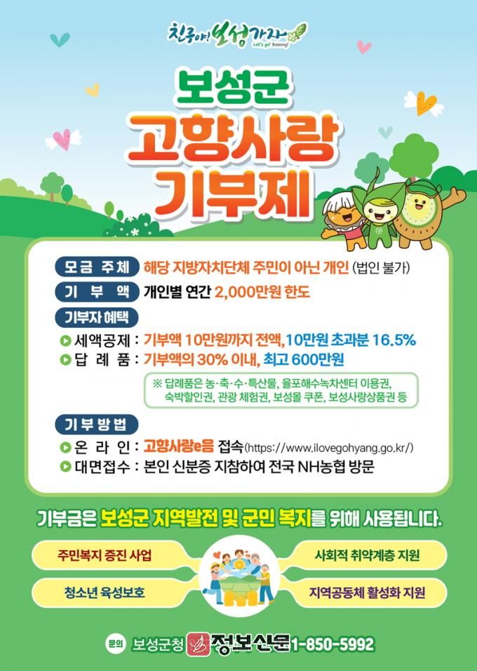 ![]() 보성군, 2025년 고향사랑기부제 답례품 공급업체 모집 |
