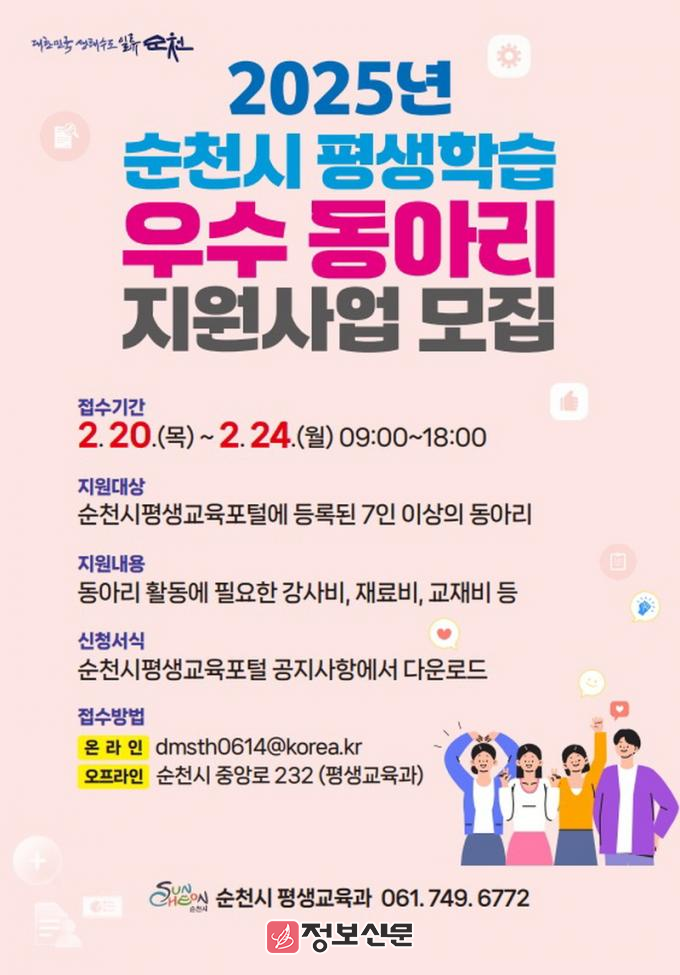 ![]() 순천시, 2025년 평생학습 우수동아리 모집 |