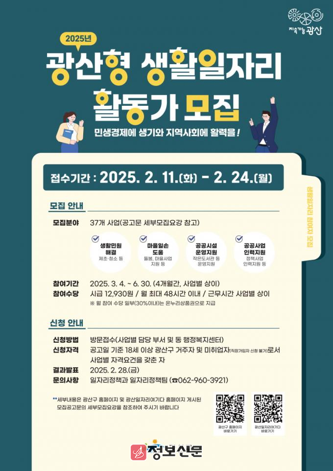 ![]() 광주시 광산구, ‘광산형 일자리’ 활동가 모집 |