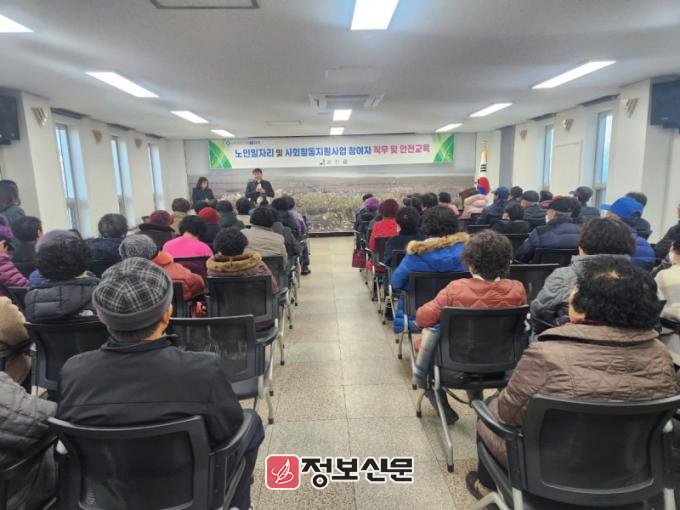 이번 교육은 문화재 환경정비, 경로당 급식 도우미 등 5개 사업 142명을 대상으로 사업 활동 방법, 안전수칙, 겨울철 보행 낙상사고 예방법 등을 중심으로 진행됐다.