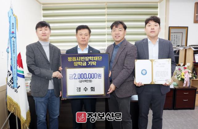 지난 14일 정수회(회장 이성열)는 정읍시민장학재단에 200만원을 기탁했다. 정수회는 정읍의 발전을 바라는 시민들의 모임이다.